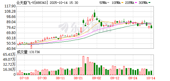 证券时报·数据宝统计显示,云天励飞-U今日收盘价为77.80元,下跌4.54%,日换手率为4.99%,成交额为10.60亿元,全天主力资金净流出1.07亿元,近5日该股累计下跌6.00%,近5日资金合计净流出1.68亿元。